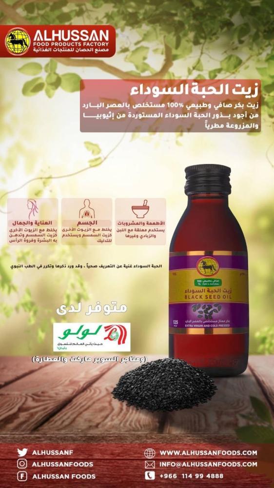 2. زيت الحبة السوداء (النقاء الحبشي): زيت بكر مستخلص من أجود بذور الحبة السوداء، غني بمضادات الأكسدة. يتميز بقوامه الصافي وخلوه التام من الكوليسترول والإضافات، مما يجعله إضافة ممتازة لروتينك الغذائي أو حتى كمرطب طبيعي فائق الجودة للبشرة والشعر.