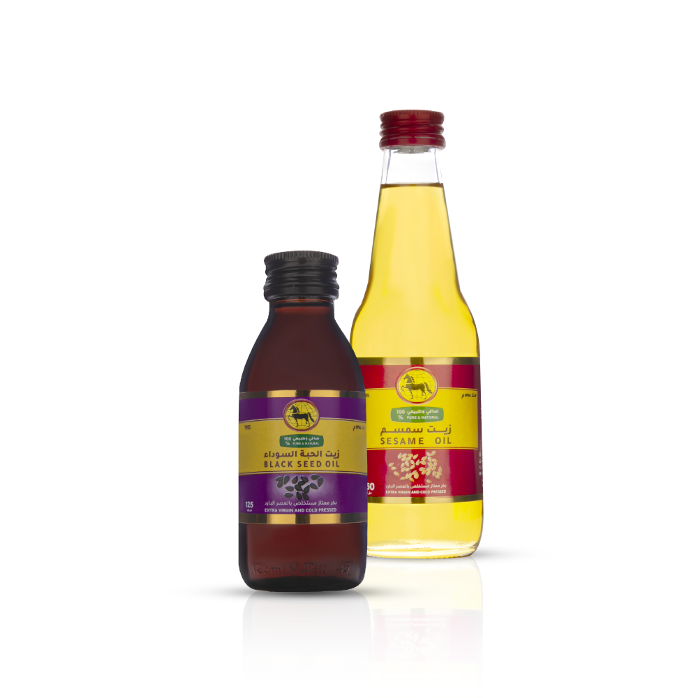 في متجر الحصان، ندرك أن الباحث عن أفضل أنواع زيت السمسم او الحبة السوداء ليس يبحث فقط عن مجرد زيت ، بل يبحث عن القيمة الغذائية الصافية والطعم الأصلي الذي يعيد ذكريات المذاق الاصلي. لذا، جمعنا لك في هذا العرض الخاص بين زيت السمسم (250 مل) وزيت الحبة السوداء (125 مل) لنقدم لك خلاصة الطبيعة في باقة واحدة.